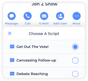 Use scripts to email or text your contacts, place phone calls, or even mark someone as contacted outside of Reach.