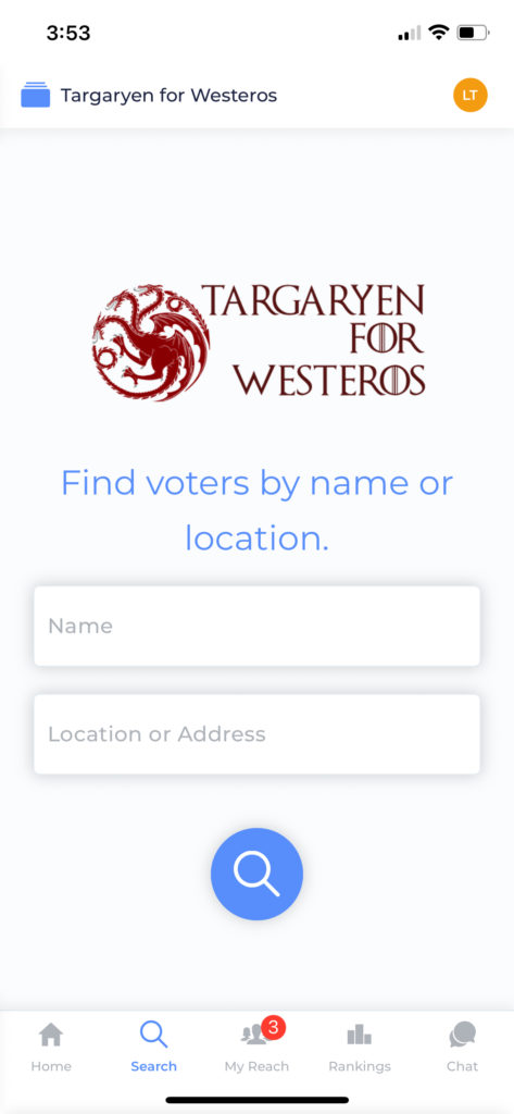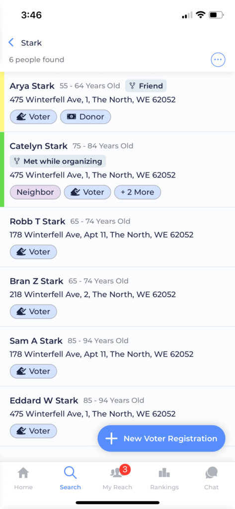 The heart of Reach is its Search screen. It’s what enables you to identify potential supporters anywhere and at any time. It’s Reach’s main event and it’s why you’re here!